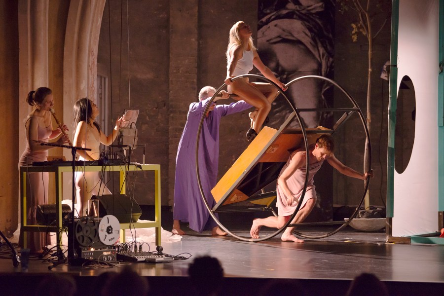 L’opéra est justement au cœur d’un autre projet d’Aliénor Dauchez : une libre adaptation du Don Giovanni de Mozart qu’elle répète dans une salle mise à disposition par Le Bateau Feu, la scène nationale de Dunkerque. Pour l’occasion, elle s’est entourée d’artistes venus d’horizons divers : la soprano Michiko Takahashi, le claveciniste Johannes Keller, spécialiste de la musique microtonale, le comédien chanteur Thorbjörn Björnsson, la flûtiste Anna Fusek, la musicienne électronique Marta Zapparoli. Pour Aliénor, le choix des artistes décide de la forme : « Ce sont les premières questions que je me pose quand j’envisage un projet : combien d’interprètes ? Quels types de musiciens et de comédiens ? Quelles sont leurs compétences et comment les combiner ? » La journée commence par un échauffement au plateau qui réunit acteurs et musiciens : « Le point de départ de mes projets, c’est que je demande aux musiciens d’être acteurs. »